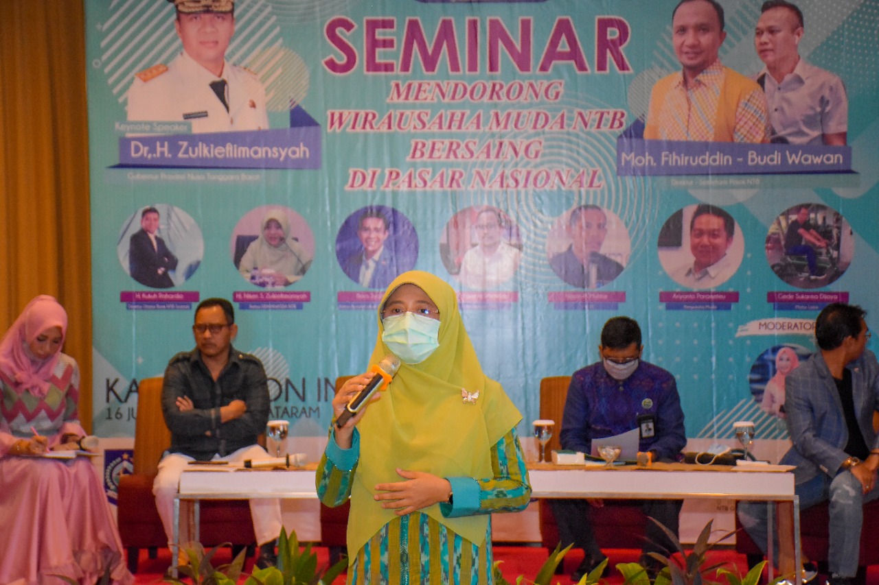 Dalam Kesempatan yang sama, Hj. Niken Saptarini Widyawati Zulkieflimansyah, selaku Ketua Dekranasda NTB yang hadir sebagai salah satu narasumber, menyampaikan, pandemi Covid-19 telah memaksa semua orang untuk mengubah perilaku, menyesuaikan diri, melihat peluang di era kenormalan baru dengan teknologi dan internet of things.
