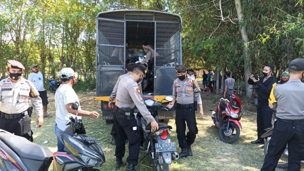 KabarNTB, Sumbawa – Tim Sabhara Polres Sumbawa menggerebek lokasi judi sabung ayam di lahan kosong di Karang Padak desa Labuhan Sumbawa pada Selasa 4 Agustus 2020 sekitar pukul 12.00 Wita.