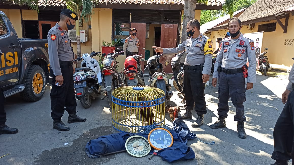 “Petugas berhasil diamankan barang bukti berupa 2 ekor ayam, 1 jam dinding, 2 lembar kain gelanggang, 1 buah kurungan dan 5 unit sepeda motor,” jelas Sumardi.