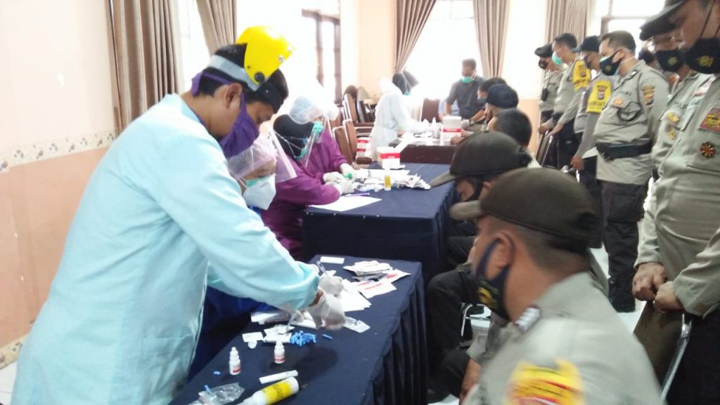 KabarNTB, Mataram – Sebanyak 634 personel Polresta Mataram yang akan terlibat dalam pengamanan Tempat Pemungutan Suara (TPS) di Pilkada Kota Mataram menjalani pemeriksaan Rapid Tes. Pelaksanaan rapid tes digelar di Gedung Wira Pratama Mapolresta Mataram, Jumat 04 Desember 2020, dimulai sekitar pukul 09.00 wita.