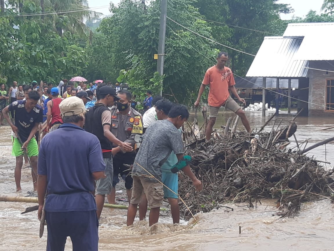 Banjir yang menerjang hampir seluruh wilayah Desa Pemasar dan sekitarnya sekitar pukul 17.00 wita itu, langsung disikapi personil Polsek Plampang yang dipimpin Kapolsek AKP Abdul Sani bersama Pemerintah Desa Pemasar dan warga dengan membantu warga yang rumahnya terendam banjir.