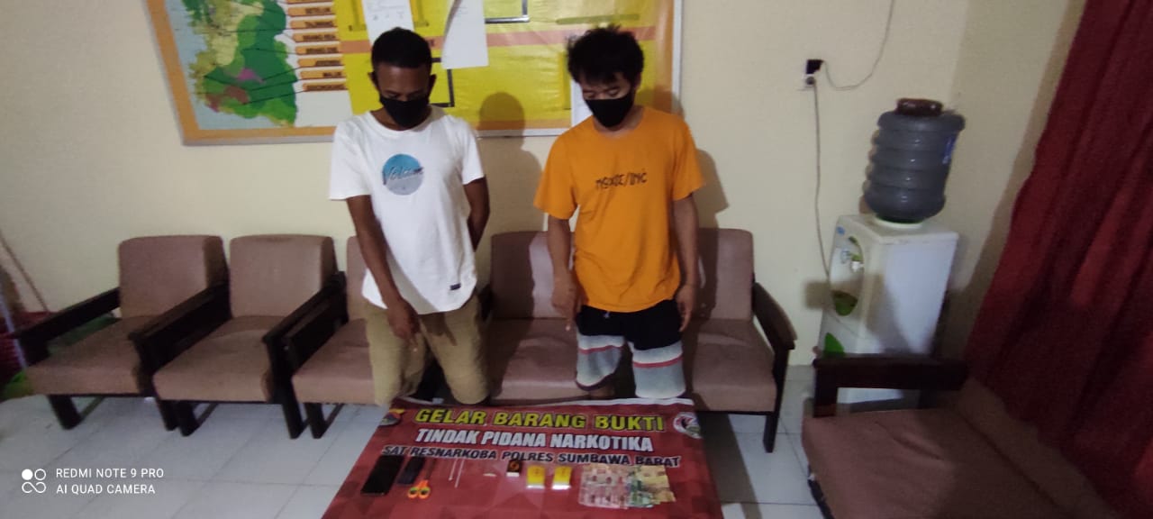 KabarNTB, Sumbawa Barat – Tim Opsnal Sat Resnarkoba Polres Sumbawa Barat mengamankan dua pemuda warga Lingkungan Arab Kenangan (Arken) Kota Taliwang, Jum’at 9 April 2021. Kedua terduga berisial YZ (31 tahun) dan MZ (31 tahun) itu ditangkap sekitar pukul 12.12 Wita saat hendak melakukan transaksi narkoba jenis sabu.
