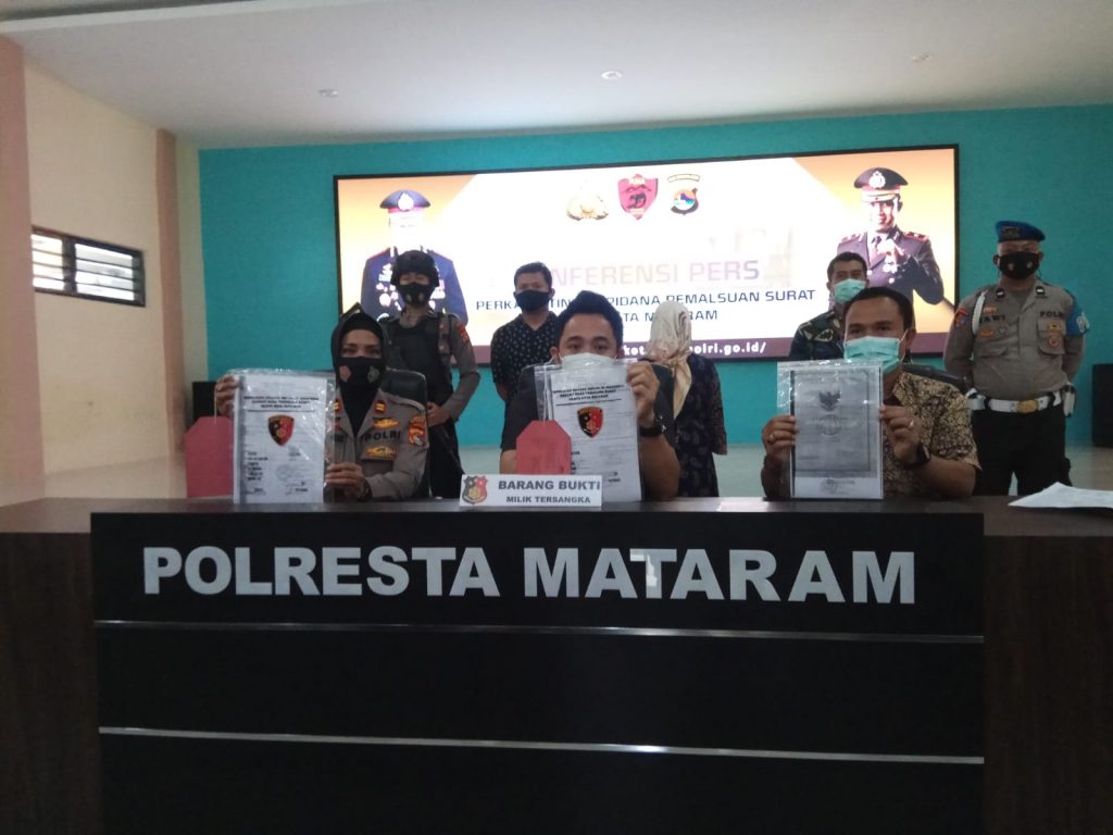 Tersangka HDY yang berprofesi sebagai pedagang, warga lingkungan Sandubaya, Cakranegara ditangkap atas pemalsuan surat untuk pembuatan sertifikat tanah seluas 200 meter persegi.