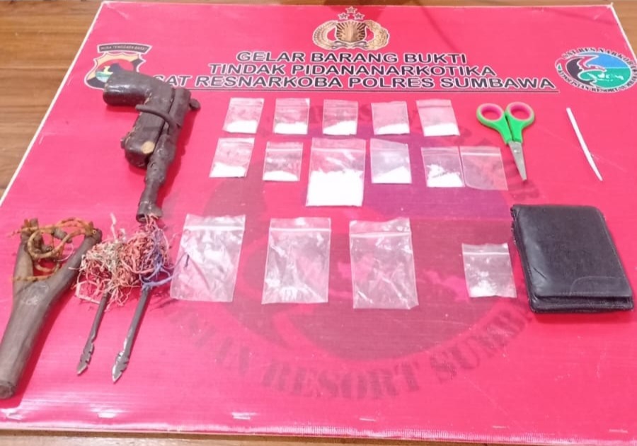 “Barang bukti yang diamankan berupa 11 poket sabu dengan berat bruto 15,27 gram, senjata rakitan (bentuk pistol), sebuah ketapel, serta dua anak panah,” ungkap Kapolres Sumbawa, AKBP Henry Novika Chandra, Selasa 25 Oktober 2022.